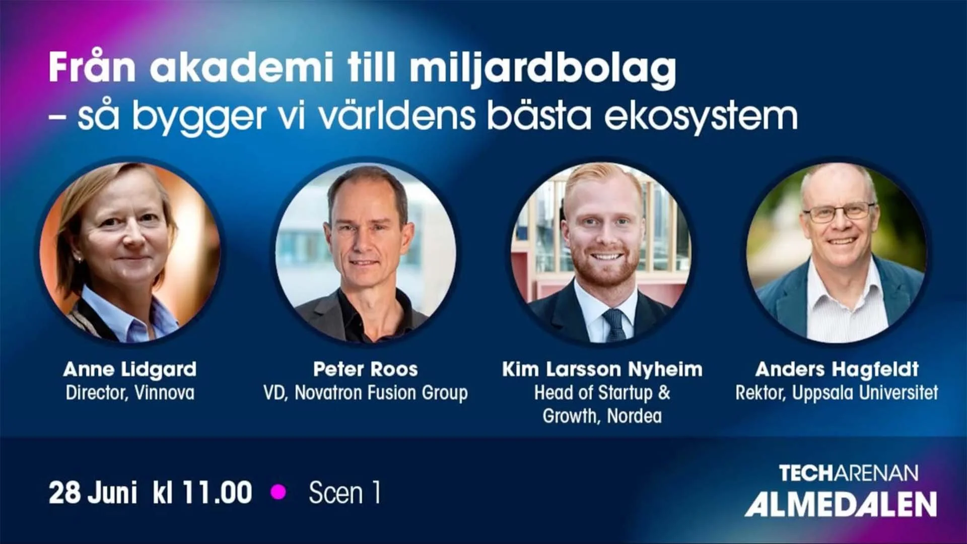 Novatron Fusion Group and our CEO Peter Roos participated at Techarenan in Almedalen 2023 - from academia to billion-dollar companies - with Director Anne Lidgard at Vinnova, Head of Startup and Growth Kim Larsson Nyheim at Nordea and Anders Hagfeldt, Vice-Chancellor of Uppsala University.